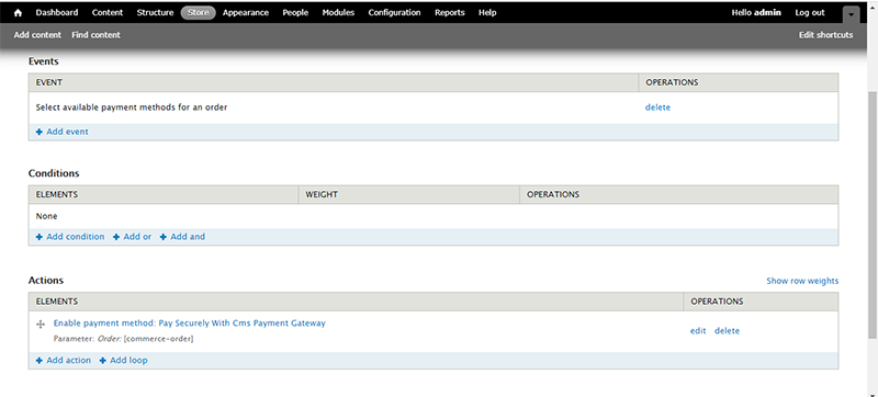 Now, in "Enabled payment method rules", you will see "Pay securely with Cms Payment Gateway", click on the link.