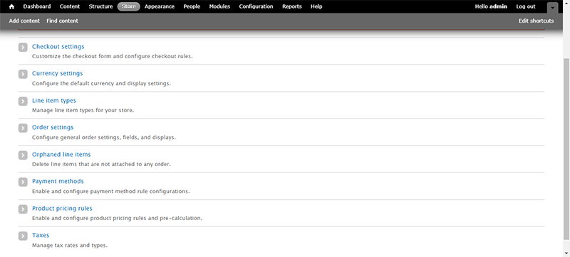 Click on the "Store" button in the navigation bar and then click on the "Configuration" Link.