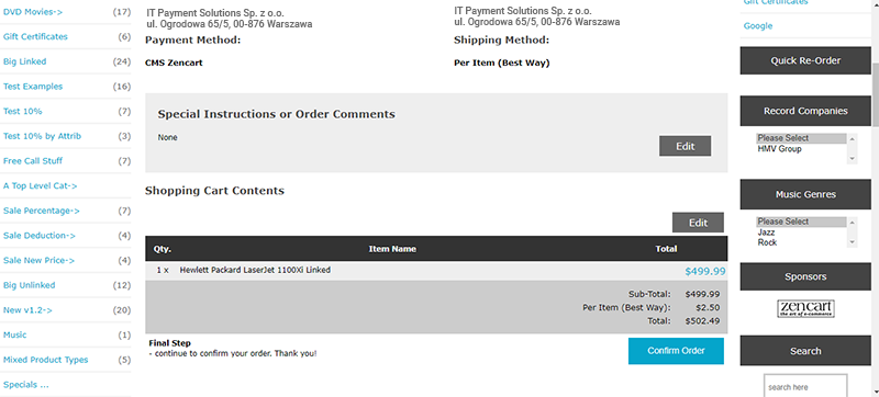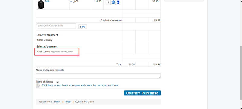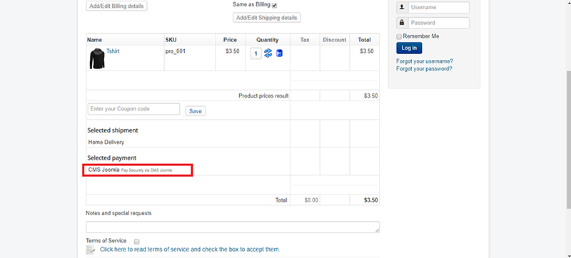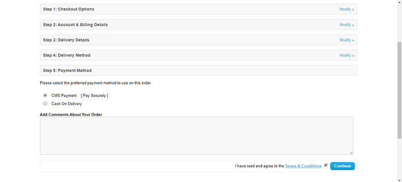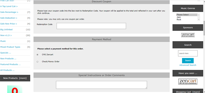 Now goto your zencart website [Front End] to check CMS Zencart Method on CheckOut page.