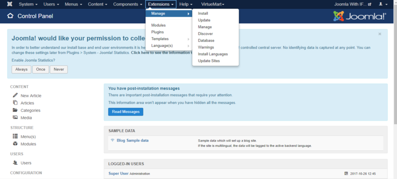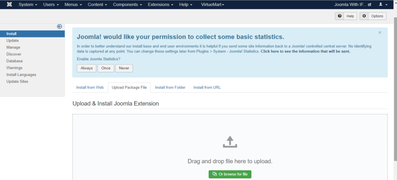 - Go to "Upload Package File" and browse the zipped "cms_joomla" gateway file.