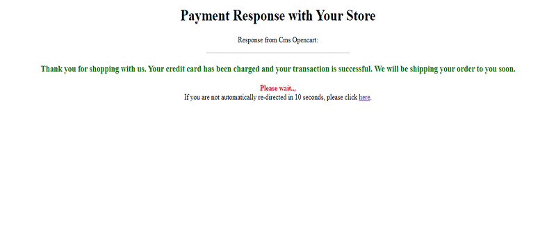 Now, you will be redirected back to merchant’s website and you will see the success message