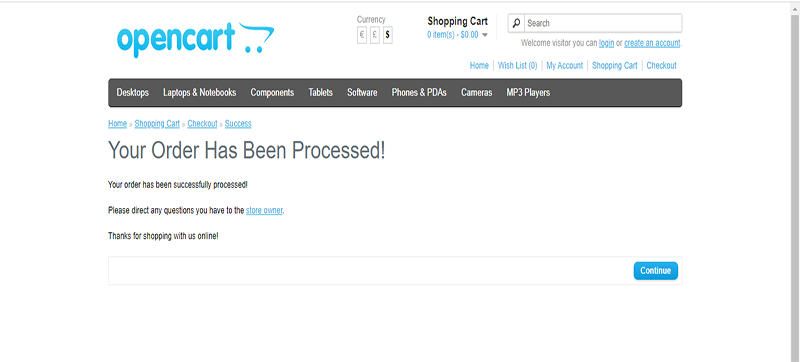 As soon as you click on the continue button you will be redirected back to the merchant website and you get to see success or failed or canceled message depending upon your transaction. See the below screenshot for your reference.