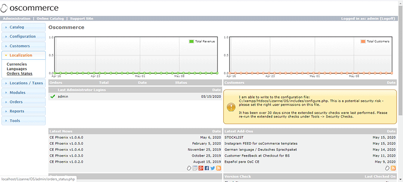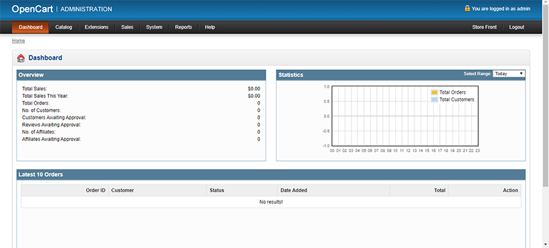 Now, login to your Opencart admin panel, you will see like below screenshot