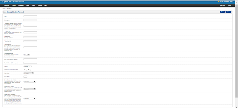 Fill all the details provided to you by gateway and make sure “Status is Enabled” to show the payment gateway on checkout page. Put the order status of your choice when the transaction is completed, failed and canceled and finally click on save button to save the settings.