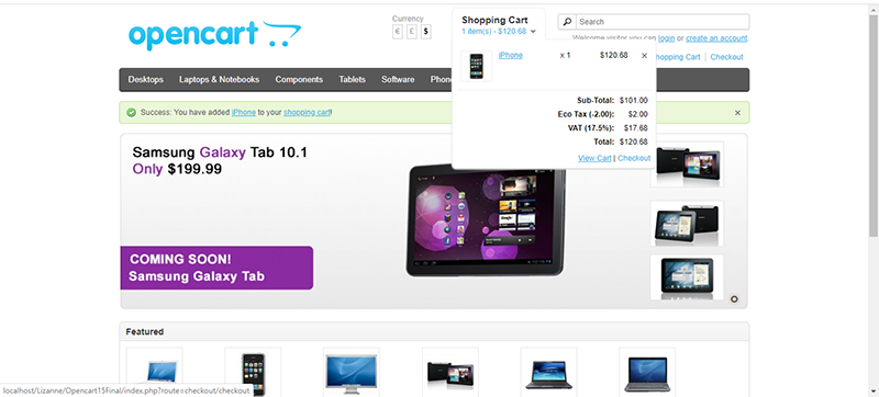 Now goto your opencart website to check if method is working or not. To check, add product to your cart, as shown in the below screenshots