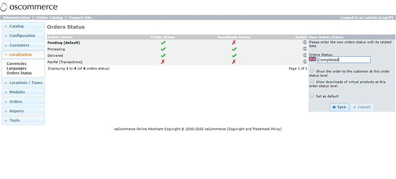 - Set Order Status Name as "Failed" and Order Status Code as "L" and fill the other details and click on "save" button
