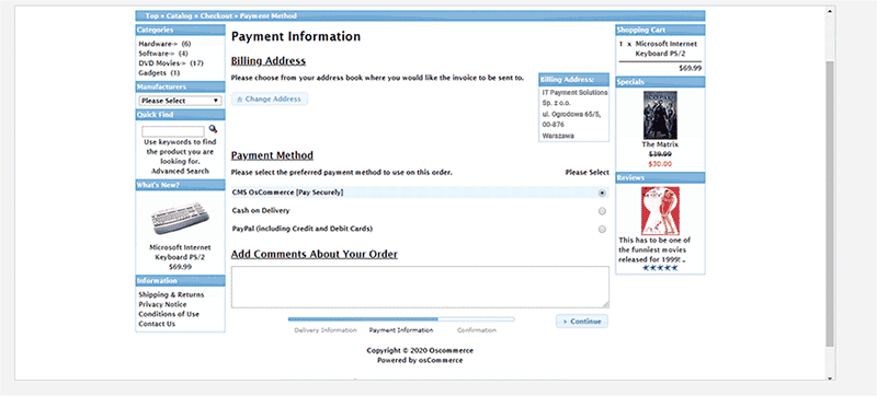 In Payment method check for “CMS OsCommerce [Pay Securely]” and click on it. See the below screenshot for your reference.