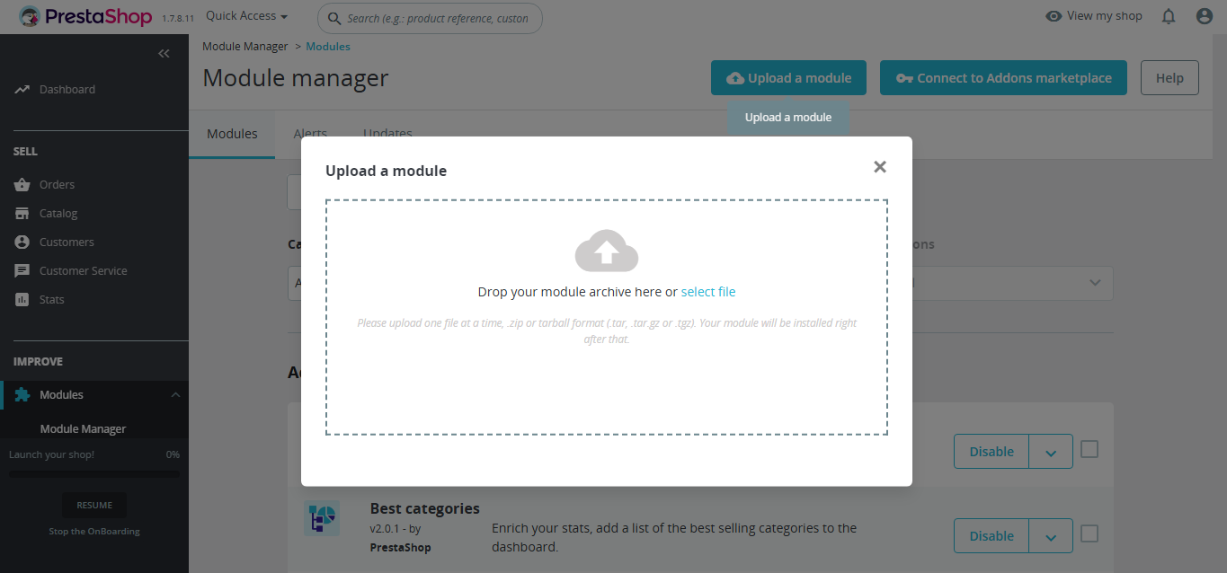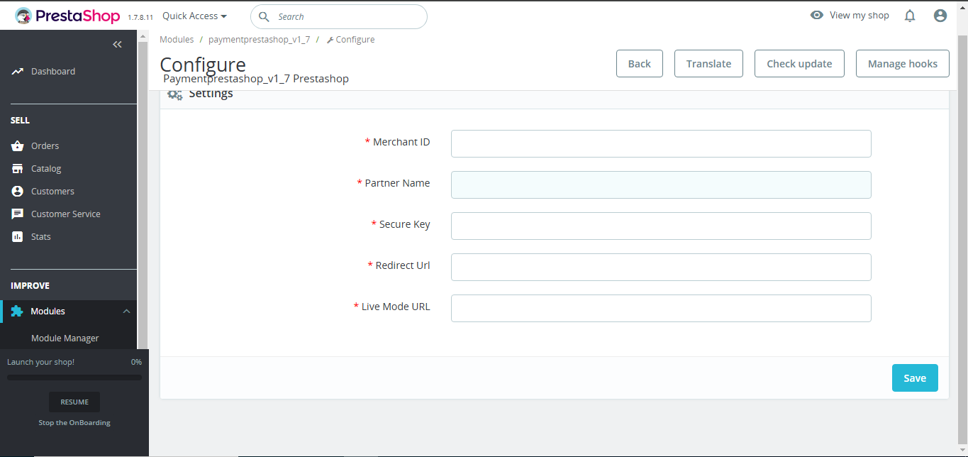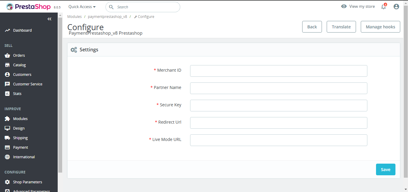 - Select paymentprestashop_v8.zip file and after installation click on configure.