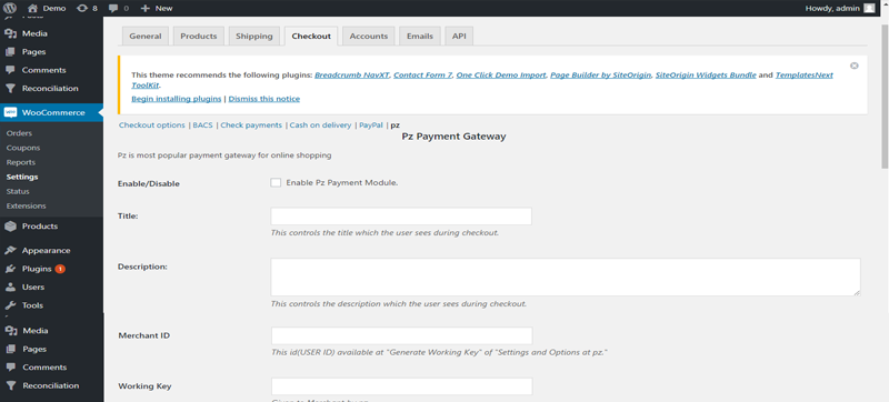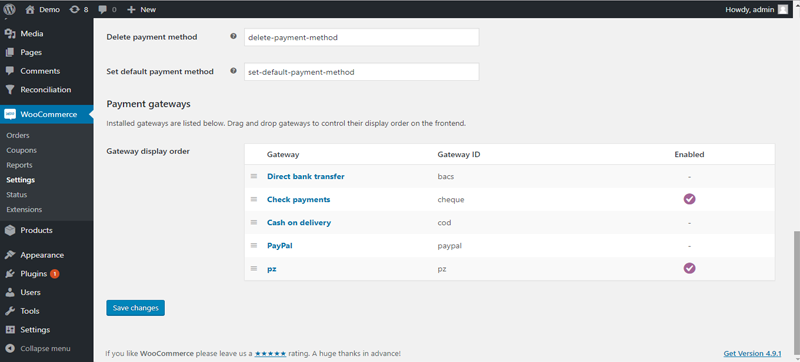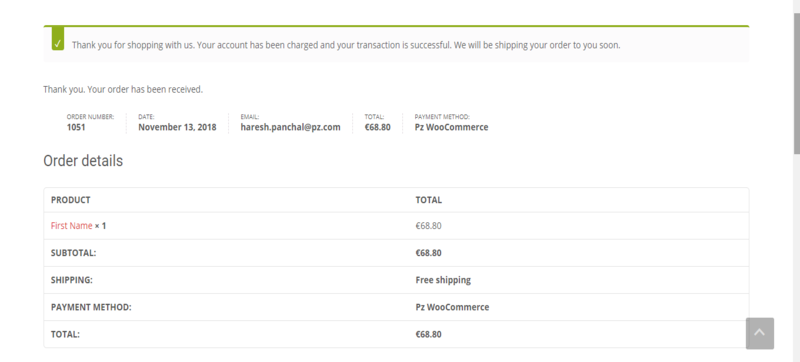 - Congratulation, your plugin has been installed successfully. Please visit your site and you will see "pz-woocommerce" as Payment Method.