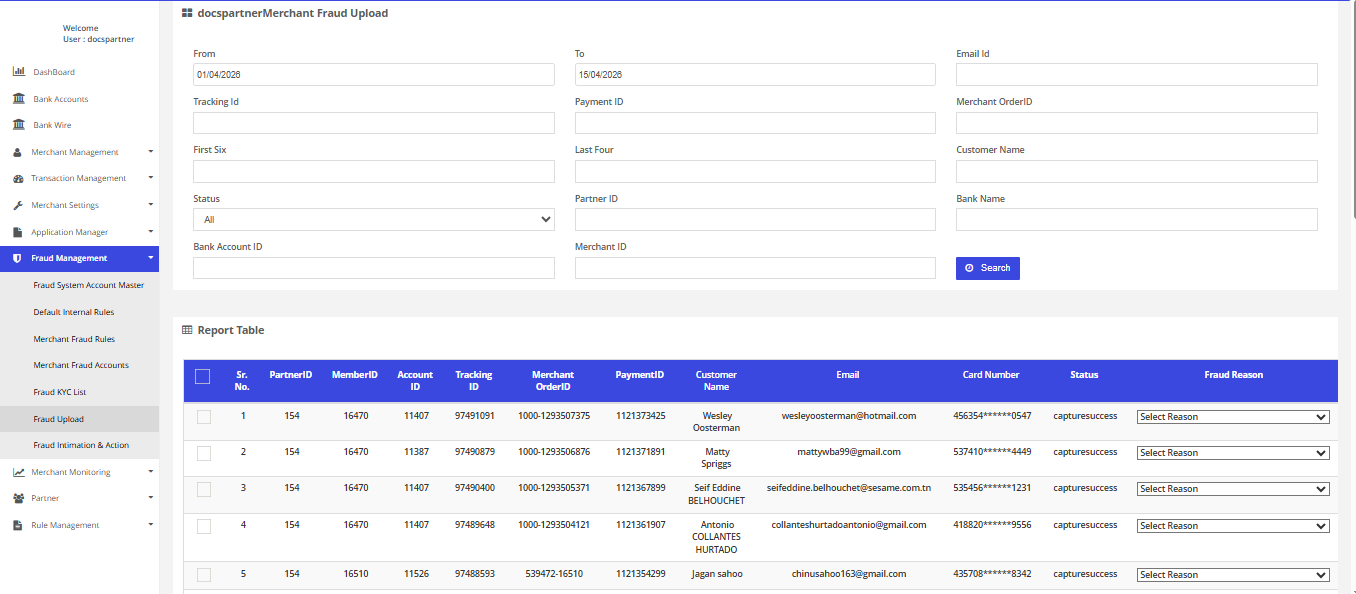 After login you need to click on "Fraud Upload" section under "Fraud Management" tab in the left navigation panel of Partner's back office.