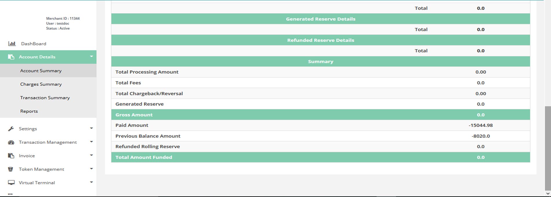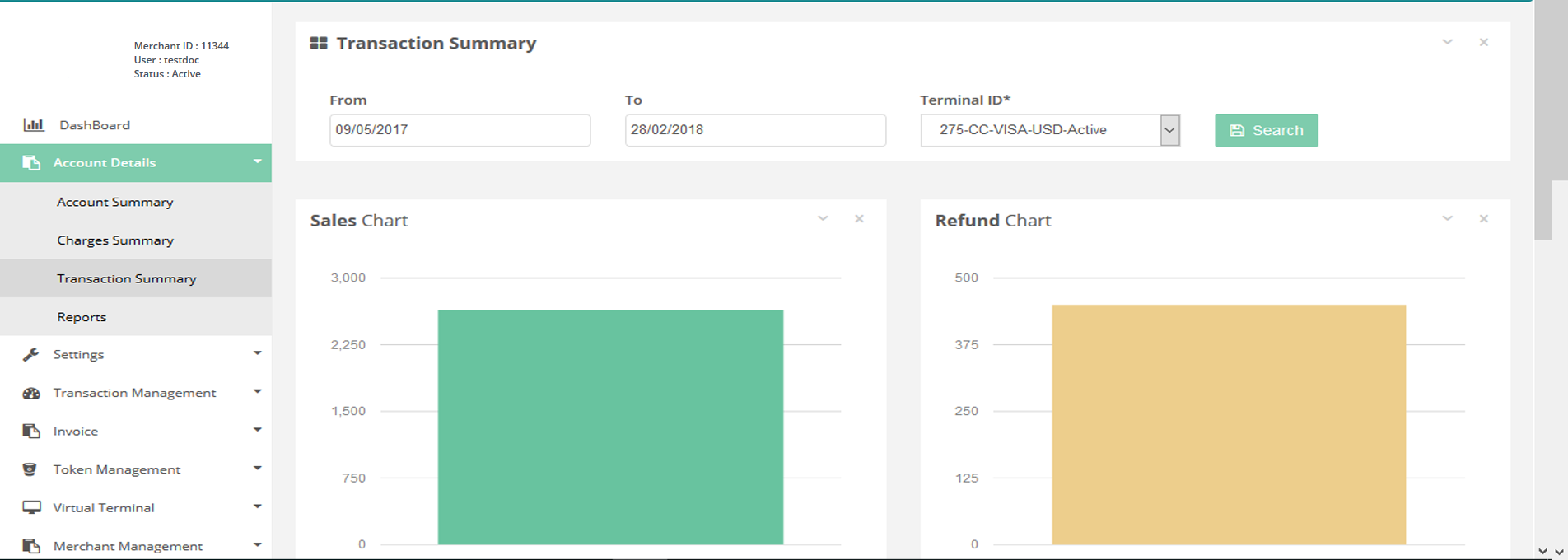 After Login you need to click on Charges Summary section under Account Details tab in the left navigation bar of Merchant’s back office.