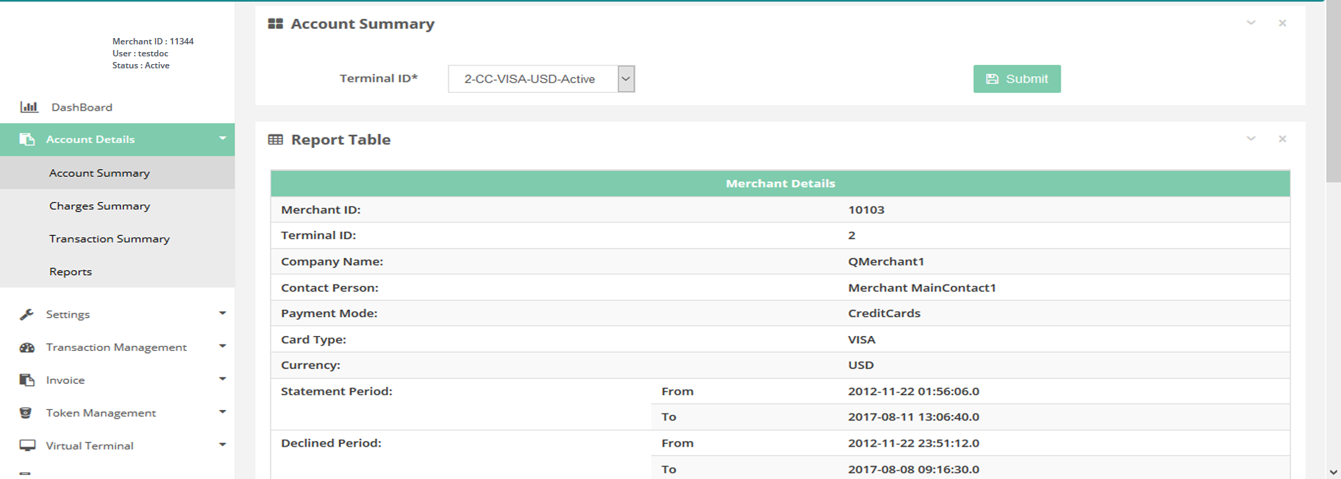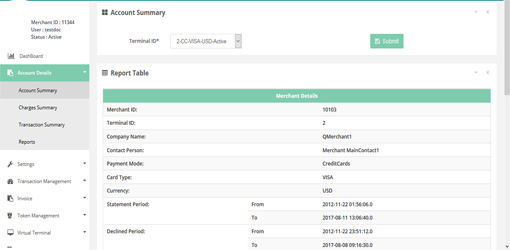 In this page you can see the account summary per terminal basis.