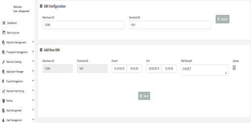In this page you can see the EMI settings for the partner, which decides whether the EMI options will be available in the checkout page at the time of payment.