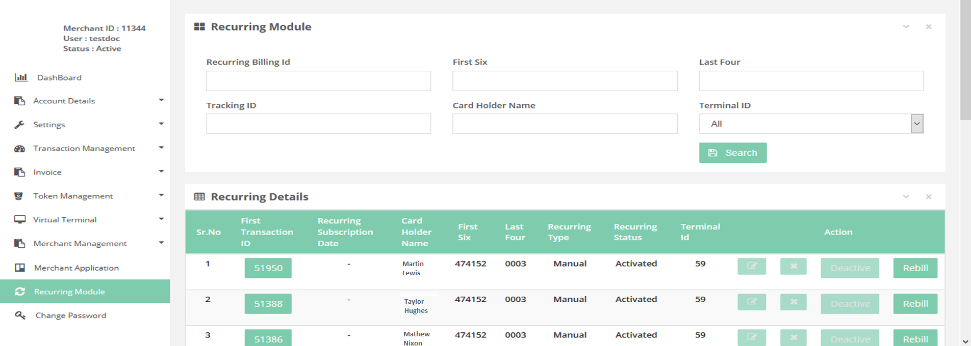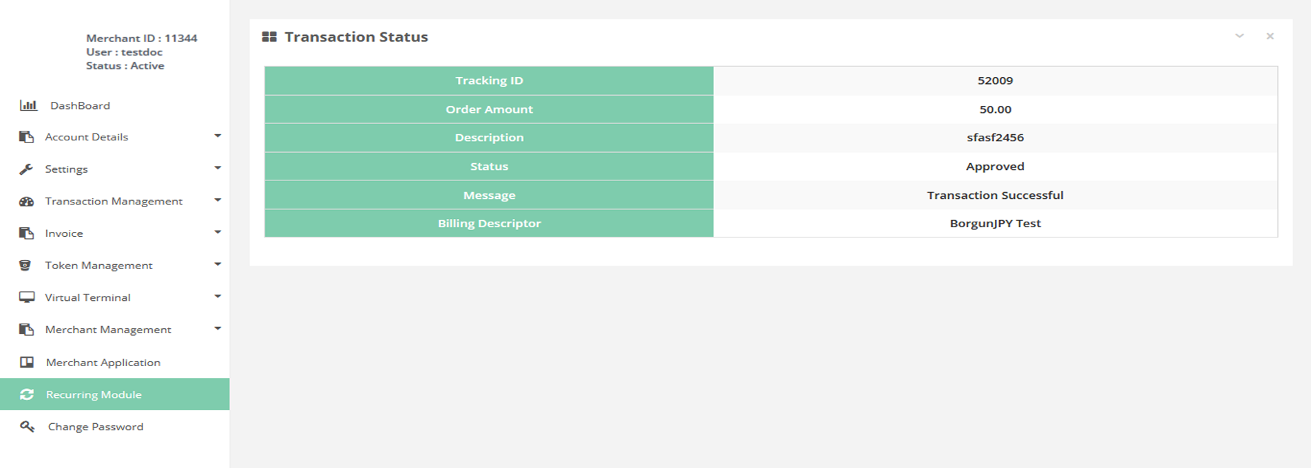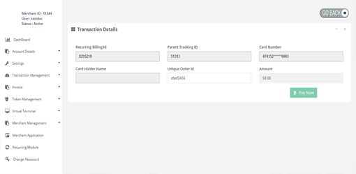 After Login you need to select the terminal under "Recurring Billing" section in the left navigation panel of Merchant’s back office.